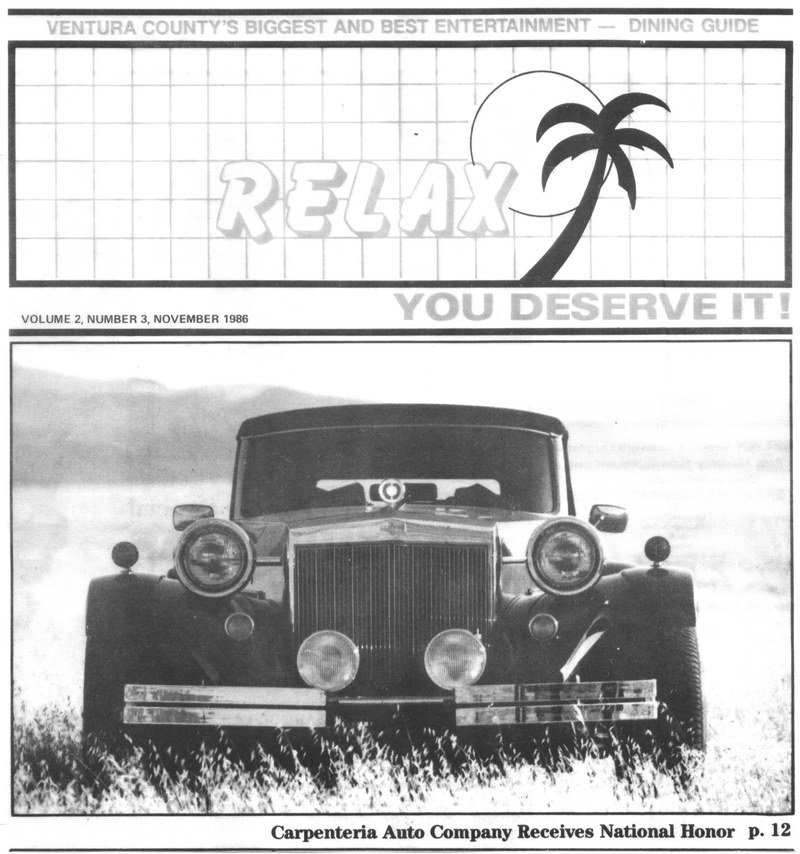 Even a dining guide likeRelax has to write about the automobile that "spells class in any parking lot" in November 1986.