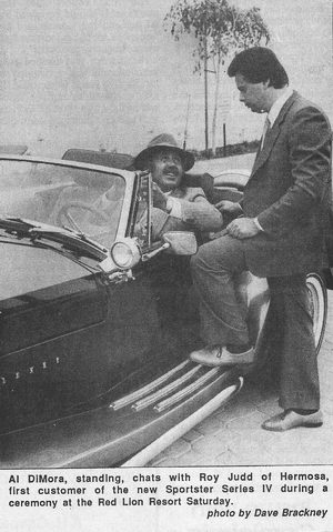 Santa Barbara News-Press captures a proud owner taking delivery of the first production Clenet Series IV Sportster from Alfred DiMora in 1986.
