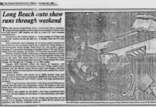 Los Angeles Herald Examiner features the Clenet at the Long Beach Auto Show in November 1985.