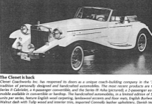 In April 1985, The Wall Street Journal gives Clenet some free publicity in its Distinctive Autos section.